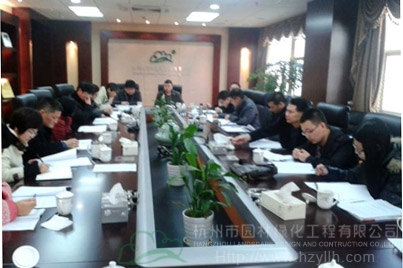 2月24日,杭州市园林绿化工程有限公司召开了2013年度科技工作会议。董事长吴光洪,总经理张炎良,副总经理陈伯翔、丁旭升,总经理助理吴忆明,工程总监高国良,财务总监孙立恒,总工办、研发中心等领导及相关部门人员参加了会议。