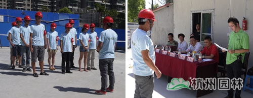 公司总裁助理吴忆明、工程总监高国良及各部门负责人、项目部人员观摩了演习。演习活动由质安部副经理陈超主持。为保证演习的真实性,达到预期效果,特邀江干区消防大队艮山中队的俞排长、杭州滨江区计生委的郑医生进行现场观摩和点评。