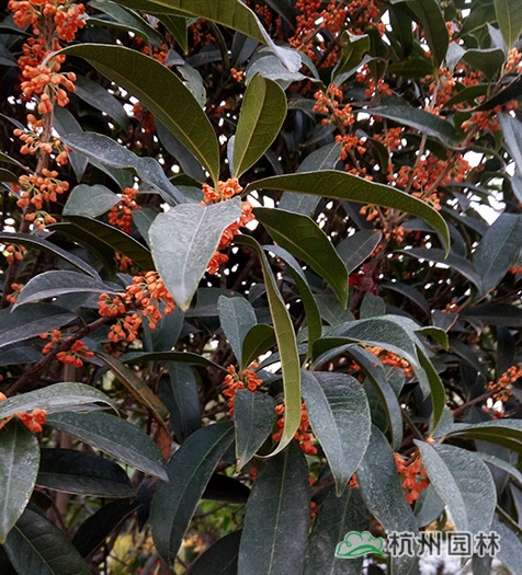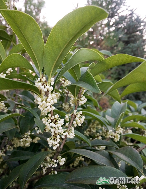 “浙江园”里应用的桂花品种以丹桂和银桂为主,共计50余棵,包括大乔木和小球类。为保证开园期间的观赏效果,这些桂花被提前运送至银川,利用当地的低温环境诱使其完成花芽分化,终于在九博会开园时营造出了桂花满树、满园飘香的氛围。