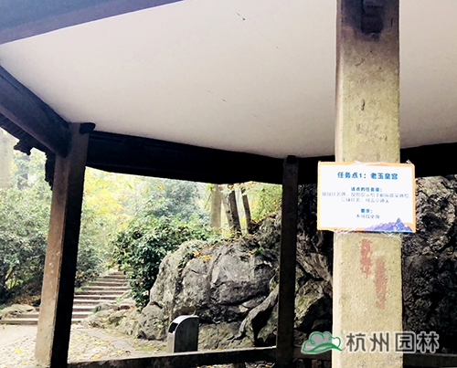第二个任务点在紫气东来石碑。大家在紫气东来石碑前的平台区域用“杭州园林”的元素进行合影、点赞,即可盖章过关。紫气东来石碑是玉皇山的标志性位置,大家在这里合影留念,成为“杭园小天使”,“为杭园打call”,玩的不亦乐乎。