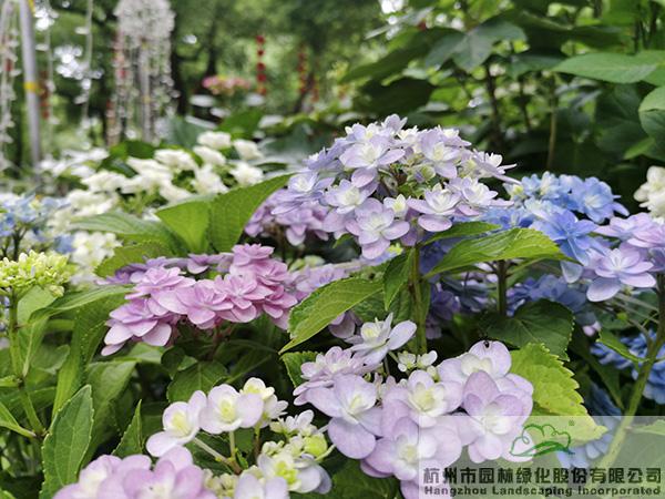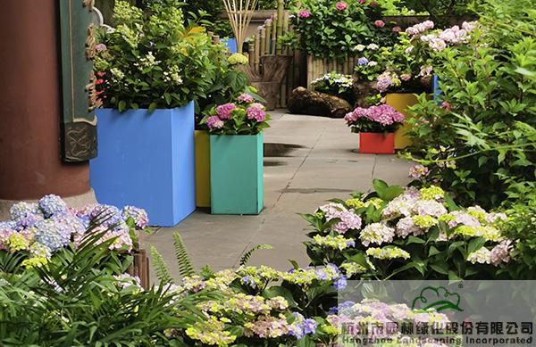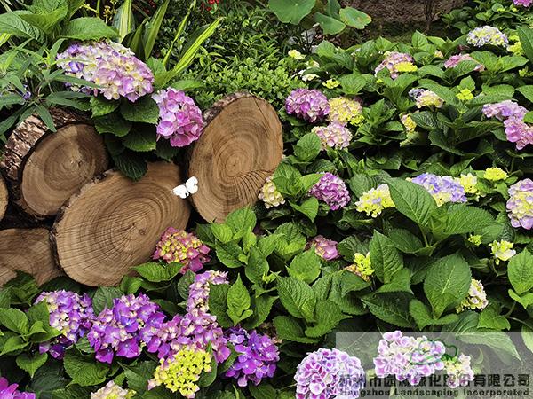 在城隍阁二楼平台,杭园股份赞助的50余个品种、近400余盆的绣球花也将惊艳亮相,通过丰富的造景方式,充分展现绣球花的魅力。不管是种植在色彩明艳的花箱中,还是与枯木、竹篱笆、瓦片等的搭配,绣球都展现出绝美的风姿,吸引着人们探寻的目光,忍不住拿起相机或手机,留下一个个精彩瞬间。其中,花大色艳、色彩可调的大花绣球‘摇摆乐’、‘蓝宝石’,矮小可爱,青涩洁白的圆锥绣球‘活力青柠’,花如宝塔、叶形如掌的重瓣栎叶绣球‘雪花’等,是杭园股份今年主推的品种,表现都非常抢眼。
