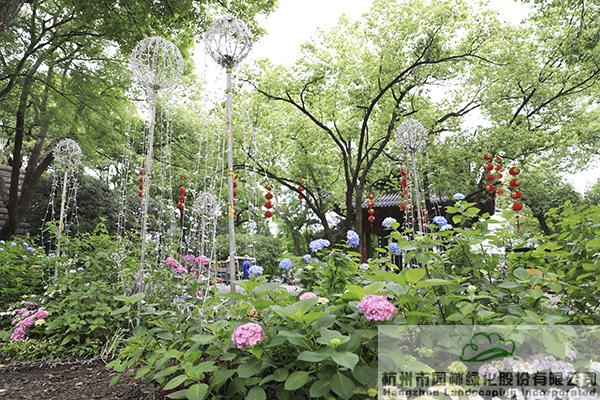 作为本次活动的赞助单位,米兰体育平台联手绣球花产业国家创新联盟,在城隍阁古树平台布置了《花落花开,年华度》为主题的八仙花景观展示区,“阁楼观湖二十年,绣球花灯满堂前”,通过代表浪漫与爱情之美的绣球花境组团,结合错落有致的景观挑灯和蜿蜒向前的时间轴序,营造出繁花如绣、前程似锦的美好寓意,以此向城隍阁开放20周年献礼。
