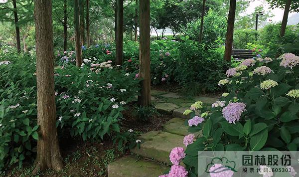 绣球园从原有的水杉林下覆盖至整个北园。