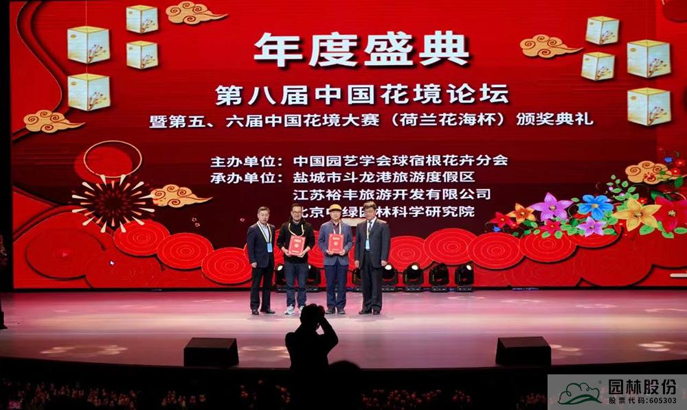 米兰体育平台副总裁李寿仁(左二)上台领取特级花境师证书